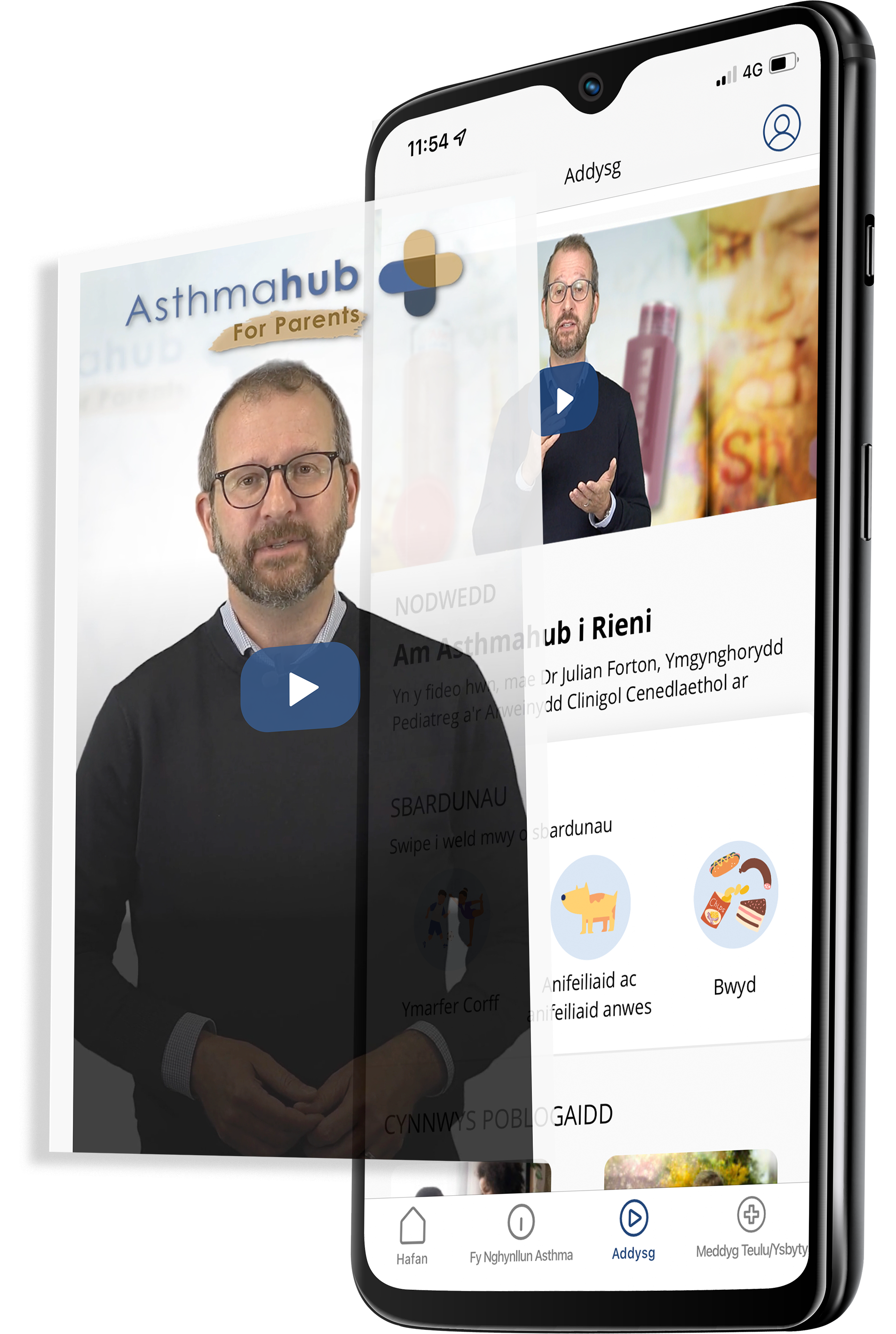 Dysgwch ragor am asthma eich plentyn yn rhan addysgol yr Asthmahub. Mae’n cynnwys nifer o fideos llawn gwybodaeth ar dechnegau ymanadlwr, rheoli asthma yn yr ysgol a llawer mwy, i gyd ar gael i’ch cefnogi chi.