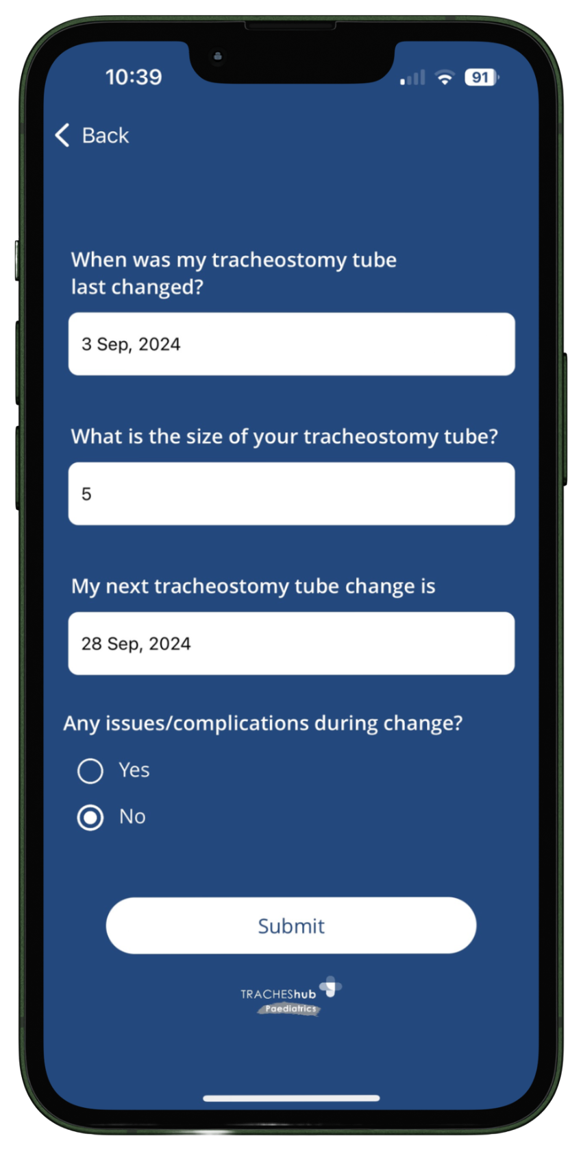 Use the TRACHEShub to record the details of your healthcare, from oxygen saturation levels to GP appointments. The TRACHEShub provides a platform for you to store all of this information in one easy to use, accessible place.